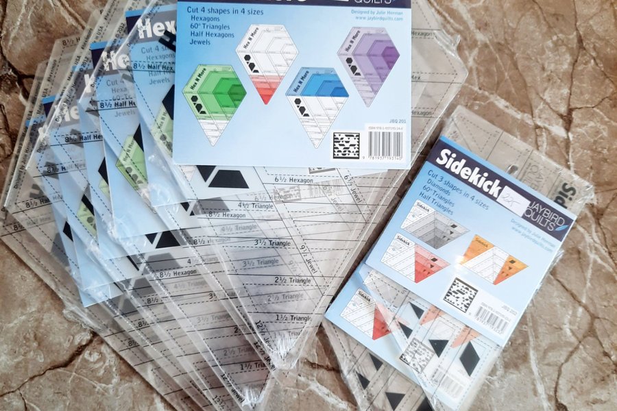Totalt 8 stycken linjaler från jaybird quilt. Instruktion följer med men på deras hemsida finns utförlig vägledning hur man använder linjalerna.