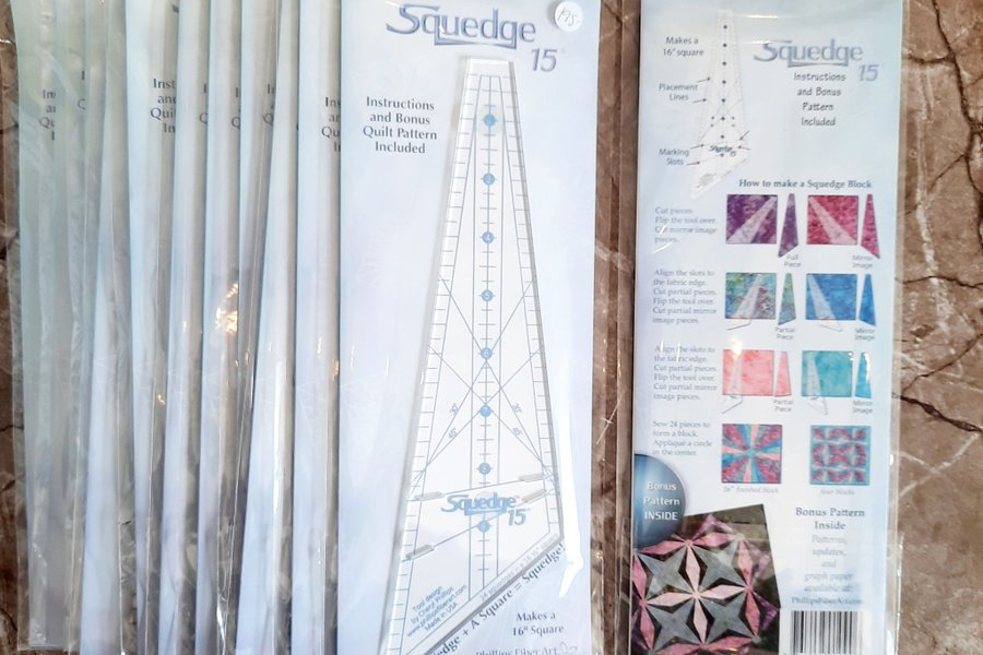 Totalt 12 stycken likadana linjaler från Phillips Fiber Art. Instruktion följer med men på deras hemsida finns utförlig vägledning hur man använder linjalerna.