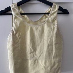 Gul väska med guldfärgad kedja. Väskan har ett spänne framtill.