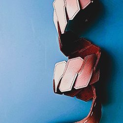 En stilfull halsduk i gråskala med ett distinkt mönster. Halsduken har ränder och geometriska former som skapar en intressant visuell effekt. (Tjusig autofyllnad, eller hur!)