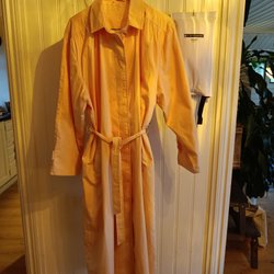 Ett set med två halsdukar i olika färger. Den ena halsduken är i en varm gul nyans med fransar. Den är ca 170 cm lång. Tror den är gjord av ull. Den andra halsduken är i en klar turkos färg, ca 135 cm lång. Båda halsdukarna har en mjuk och behaglig textur. Den gula har två mindre fläckar (se bilder) som kanske går att tvätta bort.