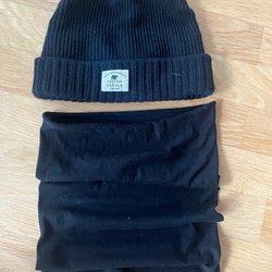 Ett fint set med en rutig ull halsduk och ett par grovstickade vinterfodrade vantar. Halsduken har fransar i ändarna. Toppskick