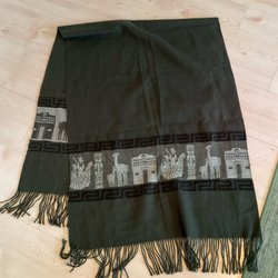 En virkad halsduk i en ljusgrön nyans med fransar. Halsduken har ett ribbat mönster. Halsduken är ca 175 cm lång utan fransarna.