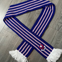 Vit halsduk med ett svart rutmönster och fransar i ändarna. Mäter cirka 130*26 cm (minus fransarna)