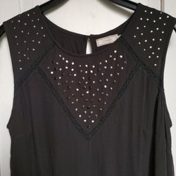 En halsduk med kamouflagemönster i gröna och bruna nyanser. Halsduken har fransade kanter. Ca 190x98cm. Den har fått några tråddragningar. Vill minnas att det är viskos, men etiketten är bortklippt. Använd några få gånger, så förutom att den har fått några tråddragningar, så är den i gott skick. Vi har katt.