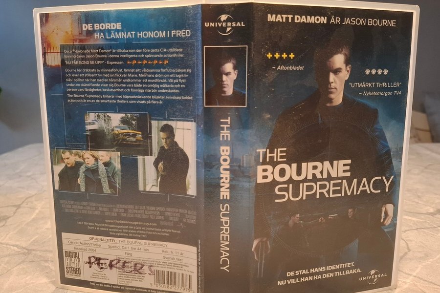 VHS-film med Matt Damon i huvudrollen som Jason Bourne. Filmen är en action/thriller från 2004 med en speltid på cirka 1 timme och 44 minuter. Rekommenderad ålder från 11 år. Filmen har svensk text.