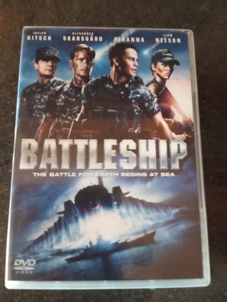 DVD-film med Taylor Kitsch, Alexander Skarsgård, Rihanna och Liam Neeson. Filmen heter Battleship och har texten "The Battle for Earth Begins at Sea" på omslaget. Med svensk text.