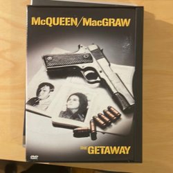 DVD-utgåva av filmen The Getaway med Steve McQueen och Ali MacGraw. En spännande actionthriller regisserad av Sam Peckinpah.