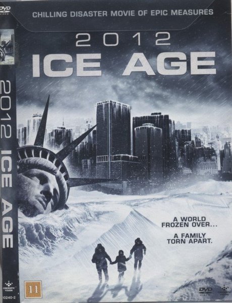 DVD-film med titeln "2012 Ice Age". Filmen beskrivs som en "chilling disaster movie of epic measures" där "a world frozen over... a family torn apart.". (2010) text: svenska norska danska