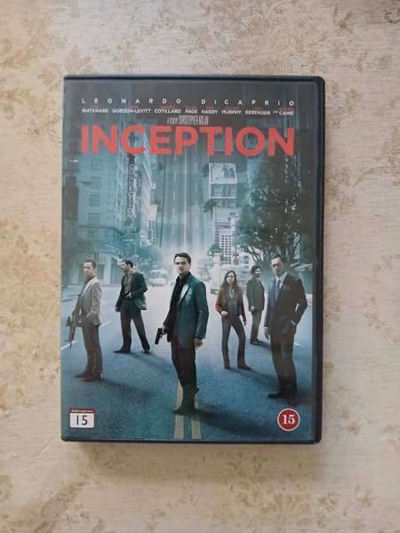 Inception på DVD med Leonardo DiCaprio, Joseph Gordon-Levitt, Elliot Page, Tom Hardy, Ken Watanabe, Cillian Murphy, Marion Cotillard, Michael Caine och Tom Berenger. Regisserad av Christopher Nolan. Filmen har en åldersgräns på 15 år.