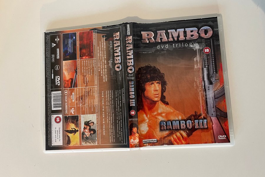 Rambo III. Språk som stöds är engelska, tyska, italienska, spanska, portugisiska och turkiska. Textning finns på engelska, tyska, italienska, spanska, portugisiska och turkiska. Bildformat 16:9 (1.2.35) PAL. Speltid: Cirka 97 minuter. Specialfunktioner inkluderar Trailer 1, Theatrical Trailer, Making of Rambo 3, Behind the Scenes: 'Scope', Behind the Scenes: 'Friendship' och Photo Gallery.