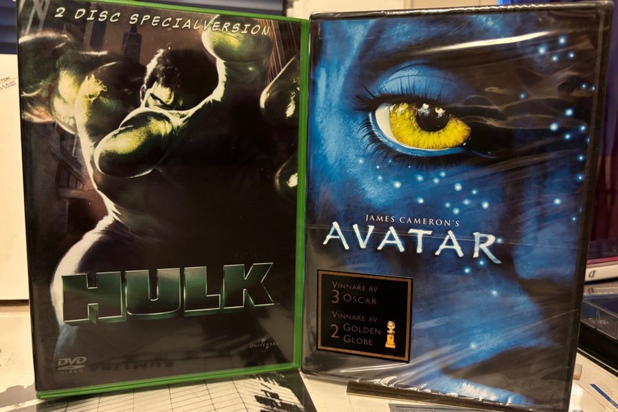 Säljer två DVD-filmer: Hulk 2 Disc Special Version och Avatar. Båda filmerna är i bra skick.