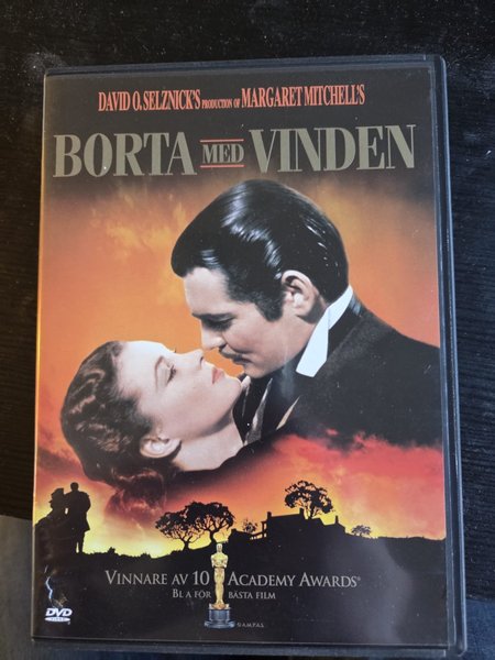 DVD-utgåva av ”Borta med vinden”, producerad av David O. Selznick efter Margaret Mitchells roman. Filmen har vunnit 10 Academy Awards, inklusive Bästa film.