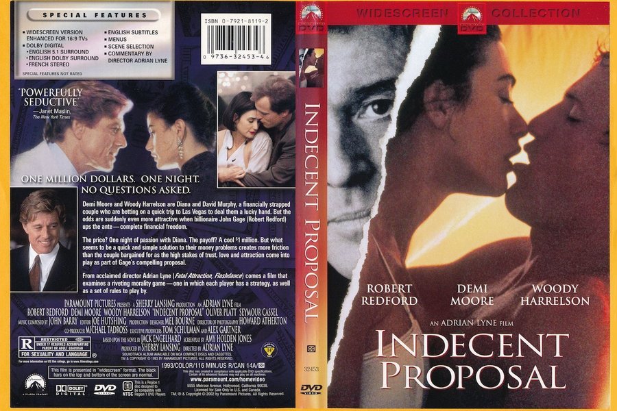 Indecent Proposal på DVD med Robert Redford, Demi Moore och Woody Harrelson. En film av Adrian Lyne.