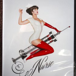 Insticket har ett veck tunt längst ryggen. Klistermärke baksida instick.