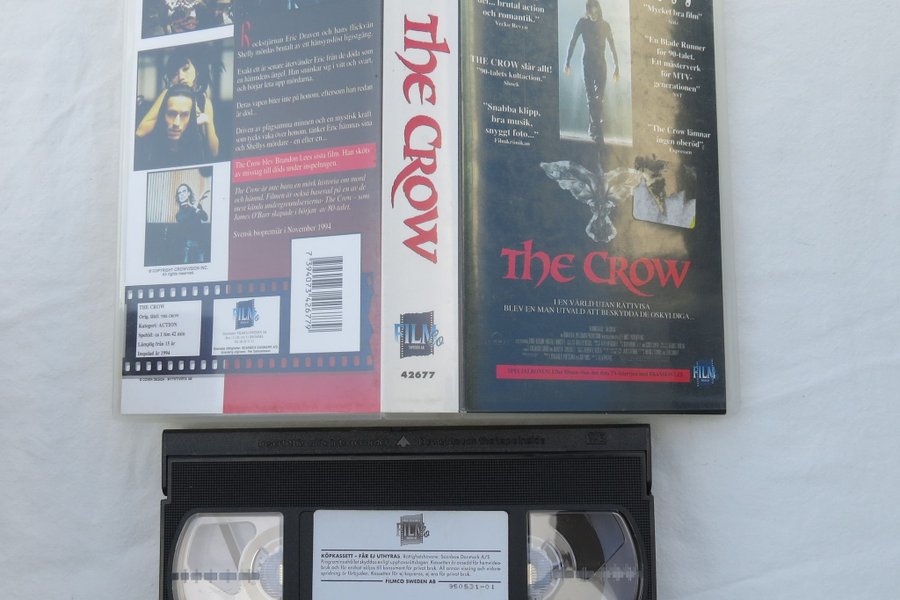 Svensk utgåva av The Crow på VHS. En actionfilm från 1994 med Brandon Lee i huvudrollen.