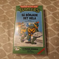 Svensk version av Teenage Mutant Hero Turtles på VHS. Följ med Leonardo, Michelangelo, Donatello och Raphael i deras äventyr.