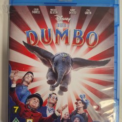 Dumbo Blu-ray från 2019. Filmen är regisserad av Tim Burton och har skådespelare som Colin Farrell, Michael Keaton och Danny DeVito. Ljudspår på engelska, danska, norska och finska. Textning på svenska, danska, norska och finska.