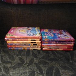 Samling av 5 st Barbie DVD-filmer. Inkluderar titlarna: Älvornas hemlighet, Rock'n Royals, Mariposa och Älvprinsessan, och hennes systrar i ett hästäventyr, Det stora valpäventyret.