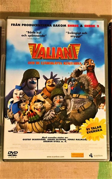 Valiant DVD med svenska röster av Gustaf Skarsgård, Johan Ulveson och Jonas Malmsjö.