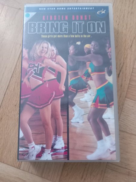 VHS-film med Kirsten Dunst i huvudrollen. Filmen heter "Bring It On" och har texten "These girls got more than a few balls in the air..." på omslaget. Utgiven av New Star Home Entertainment.