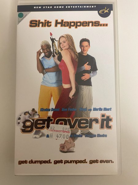 Säljer en VHS-utgåva av filmen Get Over It med Kirsten Dunst, Ben Foster, Sisqo och Martin Short. En romantisk komedi om att bli dumpad, taggad och hämnas.