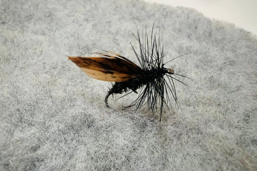 Alder är traditionellt en våtfluga men denna variant är bunden som en torrfluga vilket gör den perfekt när fiskarna tar svarta insekter från ytan. Fungerar utmärkt för både öring, harr och regnbåge i strömmande och stilla vatten.