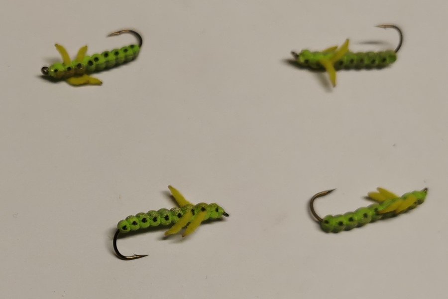 Fyra stycken flugor för flugfiske.