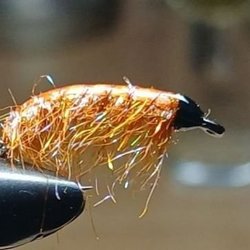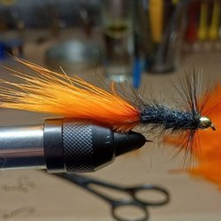 Fina flugor bundna på sylvassa Ahrex 27.10mm #6. Uppåtgående öglor.Svart chenille, whiting hackel svart, koppar ribbing och bead head guld. Regnbåge Öring Havsöring. Bör sköljas av efter saltvattensfiske.