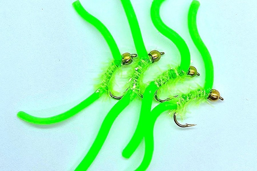 Squirmy Worm imiterar mask och är bland annat bundna med silikon som gör flugan mycket livfull för fiske i strömmande vatten efter öring, regnbåge, harr och röding. Kan även fiskas i sjöar efter abborre.