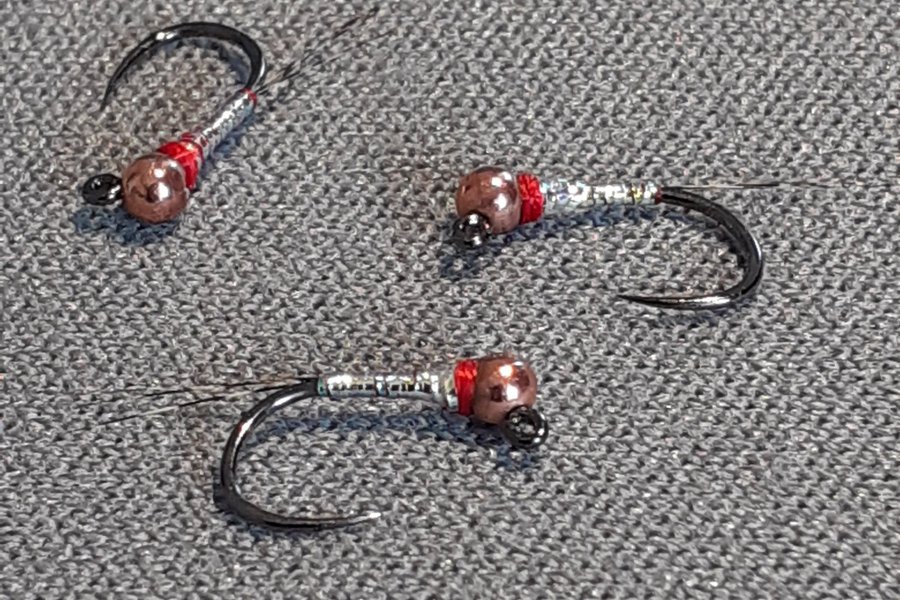 Tävlingsfluga utvecklad av Lance Egan, USA. Perdigons Rainbow Warrior med copper (2,0 mm slotted tungsten), krystal flash pearl och CdL. Hotspot red. Bunden på Hanak 450 jigkrok stl 20.