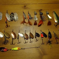 Det är dags för turen ut med flugspöt, säljer bort en del av flugorna. En ask med 4 flugor i varje fack= 24 st ofiskade gäddflugor på enkelkrok. Längden på flugorna är mellan 11-14 cm.