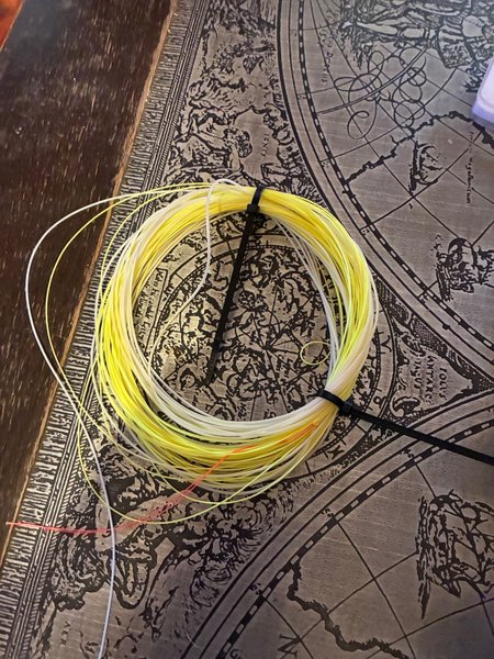 En rulle med fiskelinor i gult och vitt. Passar för olika fiskeändamål. Längden och specifikationerna är anpassade för att möta olika behov. Sjunklina okänt märke satt på en rulle jag köpte . Har bytt till ren sjunk klass6