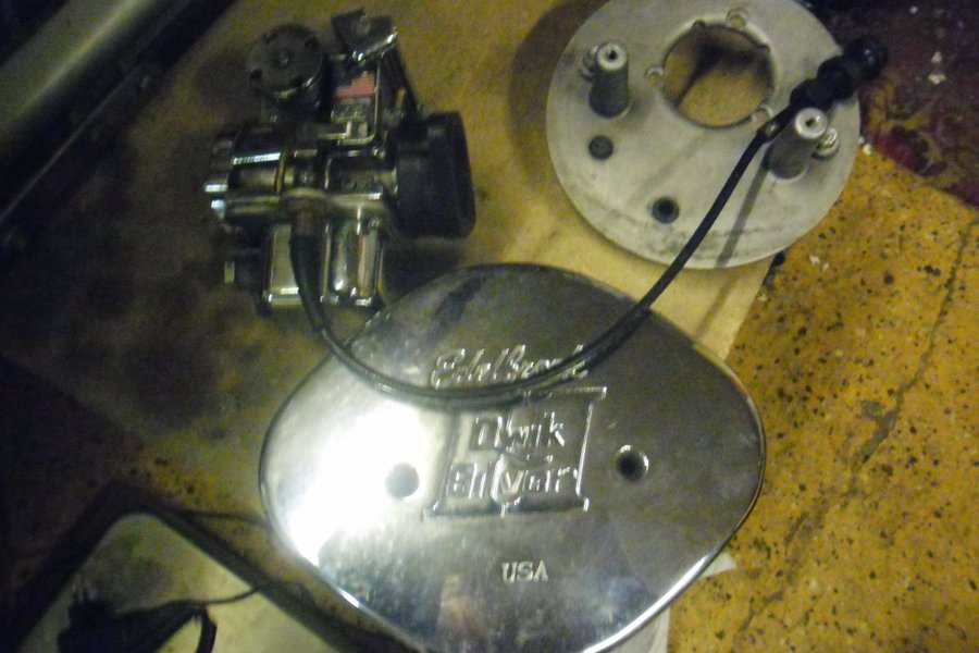 Fugge Edelbrock Qwik Silver USA kromad med insugs gummi å luftburk enl bild.