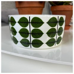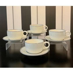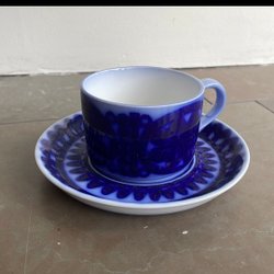 Små bruksrepor, främst på faten - En kopp har en prick inuti och några repor, troligen efter sked (bild 3) - ett fat är märkt med gul färg under (bild 5) - i övrigt fina - inga nagg, krackeleringar eller andra skador