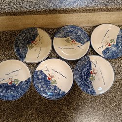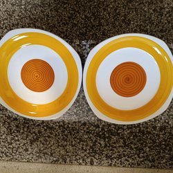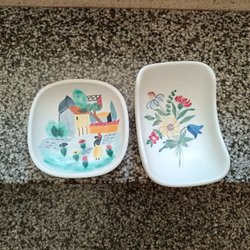 2 ST KOPPAR H 6CM:D 7,5CM:::H 7CM::D 9CM+ FAT D 15CM::D 13CM:: ALLMOGE GUSTAVSBERG HANDMÅLAD GLASYR
