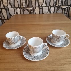2 st Fina modern te/kaffekoppar med mönster av Stig Lindberg.