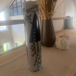 Vas designad av Stig Lindberg. Limited edition - 100-års jubileum. Vasen har ett randigt mönster i blått, svart och vitt.