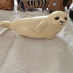 En charmig keramikfigur föreställande en säl, designad av Lisa Larson. Perfekt som en dekorativ detalj i hemmet eller som en del av en samling.