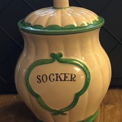 Blå KRYDDBURK med LOCK nr 92 KANEL. Inga nagg sprickor eller missfärgningar. Granska bilderna noga för egen bedömning. Välkommen att buda eller köpa.