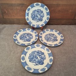 5 mattallrikar ur den för tiden mycket exklusiva servisen Sultan som tillverkades av Gustavsberg mellan 1913 och 1936. Dessa är stämplade 1916. Dekor i Art Noveau-stil med guldkant och Flytande-Blå-Teknik. Samtliga har nagg på baksidan kant. Missfärgningar och krackeleringar finns. Se bilder för egen uppfattning om skick. Ca 23,5 cm i diameter.