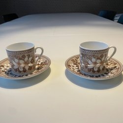2 the/kaffefat, 1 röd Willow, 2 Fasan en lite ljusare, alla i bra skick, lite glaseringsprickar på den ljusa
