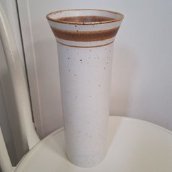 Vit vas från Gustavsberg. Vasen har en räfflad yta och en hals som kan tas av. 25 cm hög med hals och 17 cm utan. Märke Gustavsberg och ankare i botten. Inga nagg.