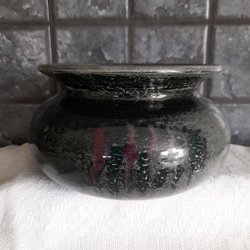 Kruka från Gustavsberg med handtag och mönster. Ca.12,5 cm hög och ca 16,5 cm i diameter.