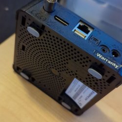 OTT TV Box Android Player, modell MXQ. Enheten har flera portar inklusive USB-A (USB-1, USB-2, USB-3), SD/MMC-kortplats, HDMI, Ethernet och DC 5V/2A strömingång.