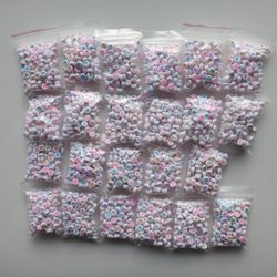 Pärlor, kantiga med bokstäver. Uppskattningsvis 500 pärlor per