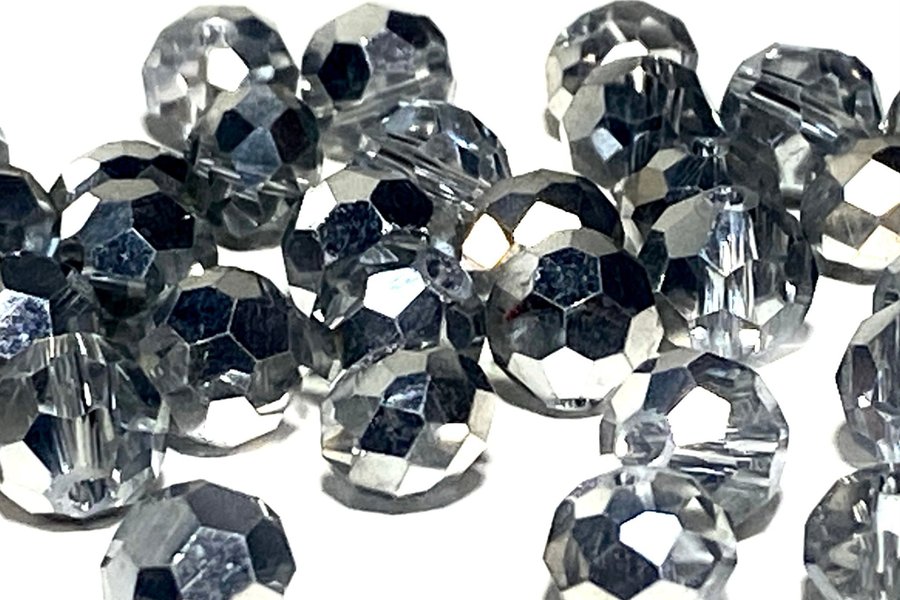 Runda facetterade electroplate glas pärlor i silver 8mm