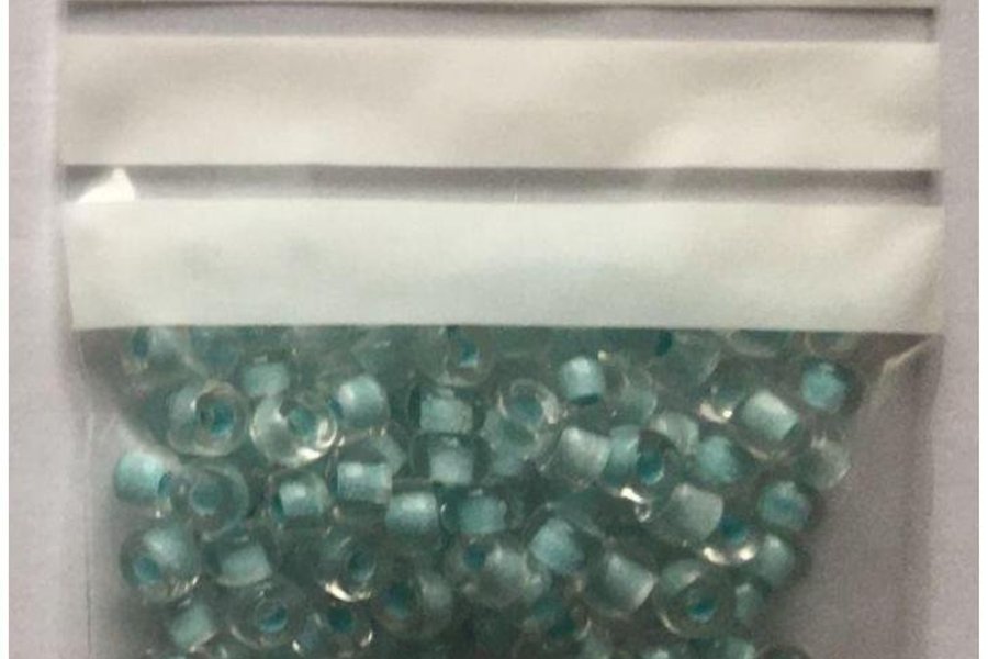 100 st Turkosblå 'kongopärlor' av glas (turkos kärna, transparent yttre)