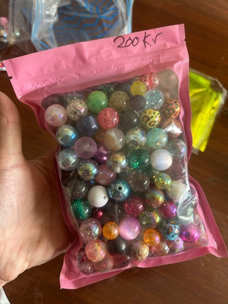pärlor för penna 15-16 mm ca i storlek men finns lite smått med som passa på penna.