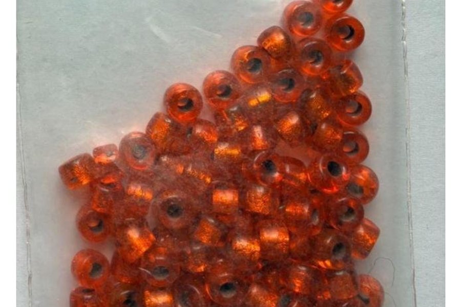 100 st Oranga skimrande 'kongopärlor' av glas (svart kärna, orange yttre)